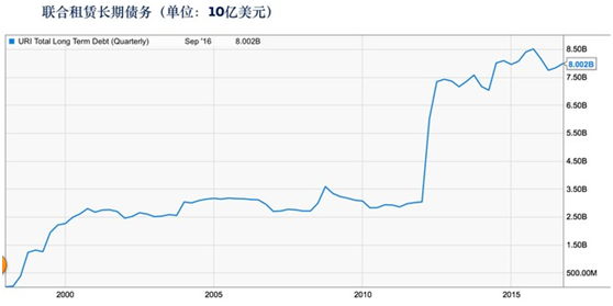 联合租赁在1997年成立,但在第二年就成为行业龙头。当时的租赁行业整个市场规模为200亿美元,但却以每年15%增速发展,行业及其分散割据,规模前100家公司市占率仅两成。1998年,公司在前一年纽交所上市后融资,以12亿美元收购了行业老二US Rental;之后下半年,公司开足马力,收购60家公司,整合400多家分店。经过一年的发展,联合租赁业务已经覆盖整个北美地区,拥有103家公司与440家分行。