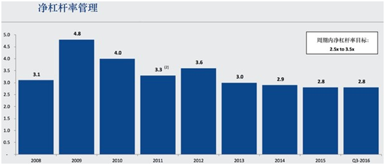 公司的快速发展,尤其是不断地并购,使公司负债不断高筑,在2015年公司负债总计82亿美元。
