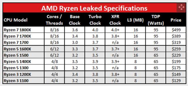 从之前网上泄露的Ryzen产品价格来看,新产品主要针对高端市场。低端产品R3 1100(4核4线程,主频3.2G)定价为129美元,最高端产品R7 1800X(8核16线程,主频3.6)定价为499美元。
