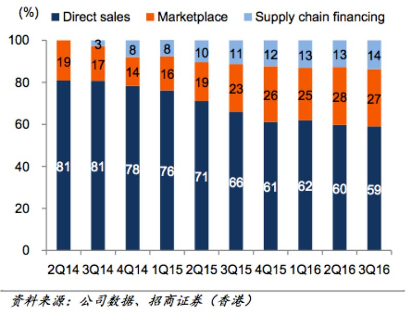 公司主要做自营,也做第三方平台,还有小部分供应链金融。第三方业务仅提供中介服务,赚钱模式为收取1%-3%的佣金。 近几年,公司自营,三方平台,以及供应链金融三部分业务比重如下图: