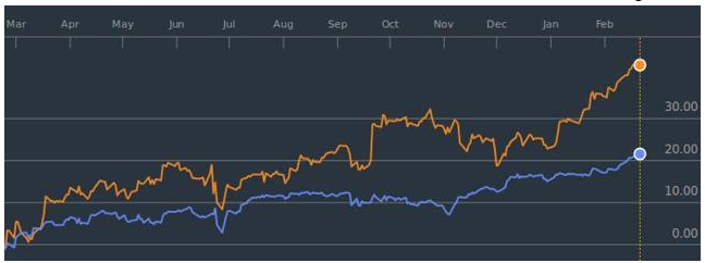 Adobe与标普500指数过去一年股价表现(来源:彭博)