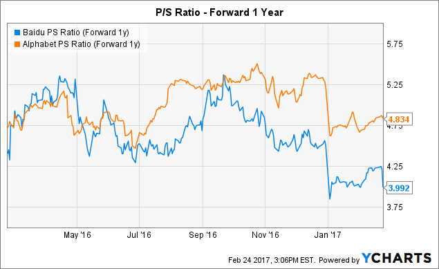 如果按管理层的预测预期,那现在的百度确实处于一个最低点。如果非要跟谷歌比,从PS上看现阶段如下: