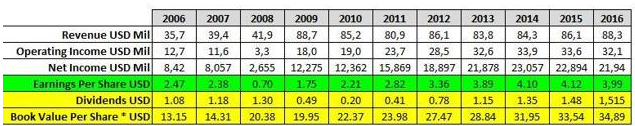 富国银行在过去十年中表现优异。该公司股价表现优于其他同行,但受假账丑闻影响,富国银行2016年股价受挫。笔者并不认为假账丑闻会对富国银行的长期表现造成严重打击。尽管富国银行因该丑闻声誉受损,但市场对此事的反应似乎有些过度。