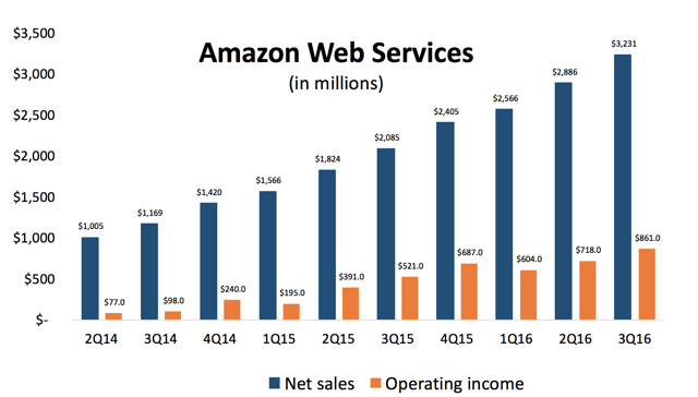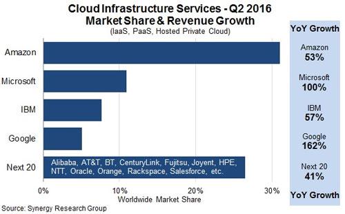 此外,亚马逊还有AWS,市占率方面领跑google,微软,IBM。