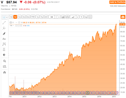 维萨和万事达就像是收费站一样,不过是金融的收费站,只要消费者购买商品用到信用卡或者借记卡的时候,公司就可以作为中间人收取一定的费用,而且还可以抵御通货膨胀,因为商品价格上升了,收取的费用也同样会相应提高。