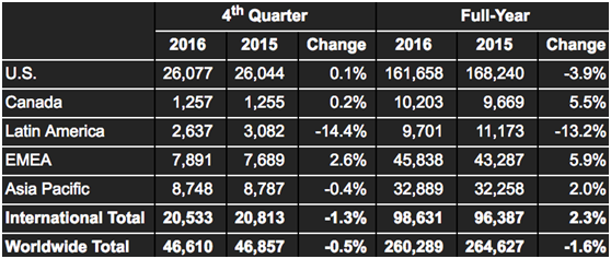 公司在2016年拉美市场销量降幅较大,但是可喜的是公司EMEA(欧洲、中东、非洲)地区销量有明显的增加,增幅接近6%。