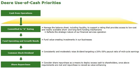 迪尔是全球领先的工程机械设备制造商,是从一个单人铁匠店发展成为目前世界上第二大的工程机械制造商,全球著名的农机巨头。但目前来说,由于公司所处的行业是典型的周期性行业,因此,公司自2014年以来就没有再增加过股息,但在此之前公司股息一直保持较高的增长率,仅从09年到14年就增加了一倍以上。