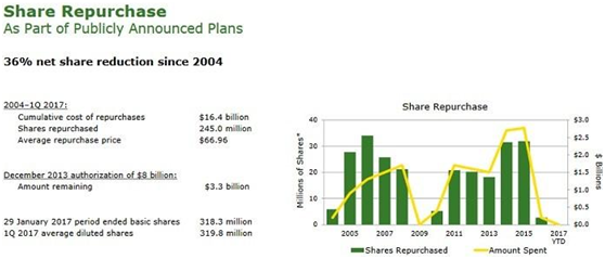 公司是少数的十年以上一直保持股息增长的企业,而且公司拥有领先的品牌,高利润的商业模式,已经有了从衰退中走出的势头,乍看2017年,公司有可能会提高公司股息。