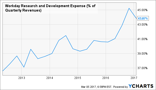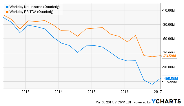 云平台公司的一大盈利就是订阅费用,这也是Workday的主要收入来源。第四季度,公司订阅收入同比增长39.5%,至3.6亿美元;专业服务收入增长16%,至7100万美元。运营亏损占到收入的25%,虽然环比亏损有所减少,但同比仍然上升。