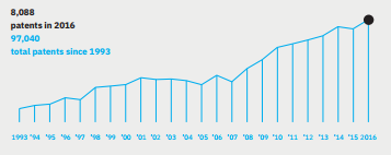 不过,从上图(取自公司年报)公司持有专利的情况来看,对比美国国内公司持有的专利数量,IBM连续24年均位列第一,除此之外,IBM也在2016年成为第一家持有超过8000项专利的公司。此外,公司在2016年一年间投入的研发费用、资本开支及并购费用高达150亿美元。由此可见,公司一直在积极投资和布局,提升创新能力,寻找增长点。更厉害的是尽管公司同期派发股息和股份回购花了88亿美元,但公司在研发、资本开支和并购的投入并没有因此打折扣。