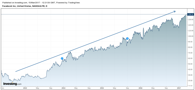 因此,脸谱的股价也在稳步上涨,且中途并未有大起大落。
