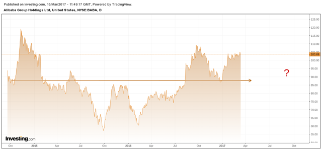 但笔者并不认为阿里巴巴会步Twitter之后,股价崩盘,因为阿里巴巴正在积极开展业务多元化,同时它也在不断进行市场扩张。此外,中国的经济发展依然非常强劲,这也利好阿里巴巴。但随着阿里巴巴的活跃用户增速不断放缓,这将对其营收增速造成不利影响,因为当前阿里巴巴的营收能保持稳步上涨,主要驱动力是来自单个用户的利润在不断上涨,但它不会永无止境地增长。在此情形之下,笔者认为未来2到3年阿里巴巴的股价不太可能大幅上涨。至少在阿里巴巴的国际业务部、云计算及电子媒体发展到与其中国业务部平分秋色之前,阿里巴巴的股价难有太大的突破。