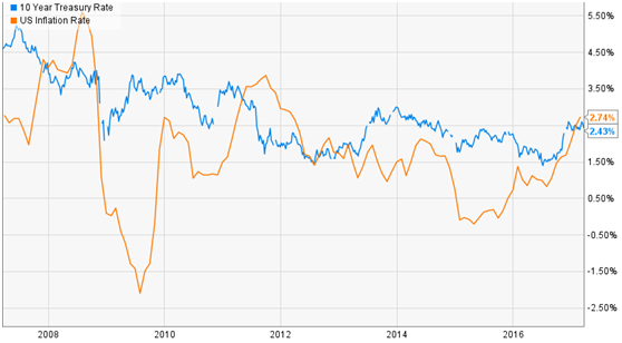 同时,油价一直徘徊在50美元/桶左右,尽管由于美国石油产量增加,而导致欧佩克成员国石油限产提振油价的效果开始弱化,但是,油价目前仍然保持在通货膨胀预期的水平。