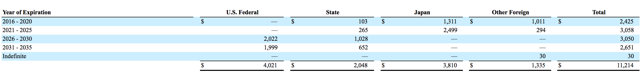 卖方分析师似乎对美光的低税率能持续多久有一些分歧。下面是公司最新年报中净经营亏损结转的截图: