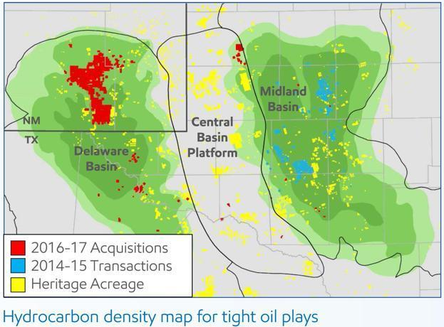 2014年以来,埃克森美孚七次收购二叠纪盆地的土地,公司持有土地面积增至180万英亩,每日产出超过14万桶石油。今年一月,公司收购沃斯堡巴斯家族旗下公司,埃森克美孚持有特拉华盆地的土地面积增加22.7万英亩。预计此次收购的土地能产出石油等值桶数为34亿。这使得公司所拥有的二叠纪盆地产油桶数超过60亿桶,其中超过75%为液态石油。