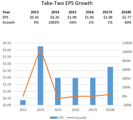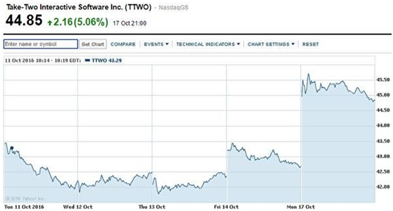 互动软件Take-Two Interactive Software (TTWO)在2016年公司放出了令数万玩家翘首以待《荒野大镖客:救赎》的发行档期,公司收入超过分析师预期,2016年公司股价整体涨幅接近翻倍。当时,分析师普遍预计公司EPS会是0.24美元,然而当财报发下来,公司录得每股净收益0.71美元,此后股价更是再创新高。毫无疑问,公司具有优质的IP和强大的知识产权,基本面良好。