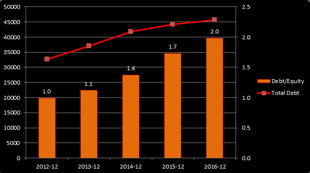 由于现金流入不敷出,再加上资产负债表上的现金也不够充裕,这导致可口可乐的管理层为了支付股利除了借债别无他法。若短期内现金流增长依然没有起色,未来管理层将不得不借入更多的债务。这似乎也是可口可乐截止目前的做法: