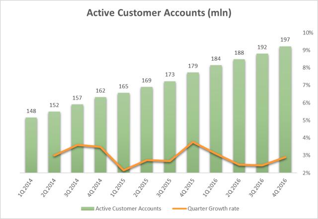接下来分析下Paypal的客户基数。