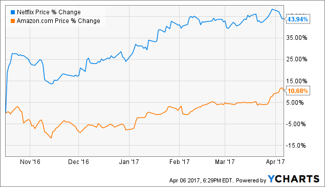 虽然亚马逊在在线视频等媒体领域取得很多进展,但横向来看,奈飞仍然是流媒体之王,从股价上我们就可以看到区别。