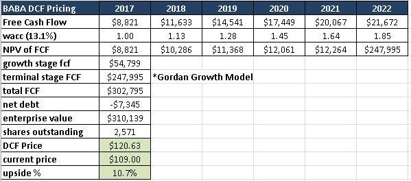 WACC我们假设为13.1%,这是FinBox.io计算的最保守的值了,然后根据戈登模型可以计算出现金流。