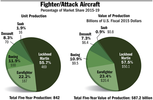 洛克希德马丁公司(LMT)目前与美国政府长期合作开发生产F-35战机,公司收入绝大部分来自于美国政府合同:2016年公司净销售额71%来自美国政府,59%的销售额来自于国防部。