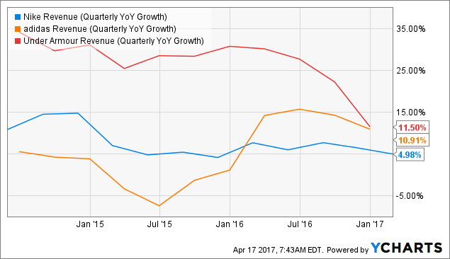 对比公司的增长前景绝非仅仅对比公司过去10至12个季度的业绩表现。首先我们得明白,所有这些公司都能从行业的有利变化趋势中占得先机。变化趋势往往能在往后的数年,甚至数十年推动公司增长。当前,全球人口不断增长,新兴市场的经济在不断发展,同时运动休闲风也在不断扩散,这些变化趋势将会利好这些公司的营收。