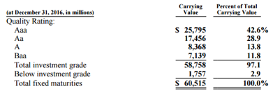公司长期以来严格遵守相关投资法律,主要投资高等级的企业、财政及市政债券,通过下图可以看到,公司有97.1%的固定收益投资组合配置在证券及以上等级标的,这就意味着,公司面临的违约风险较小,投资风险较低。