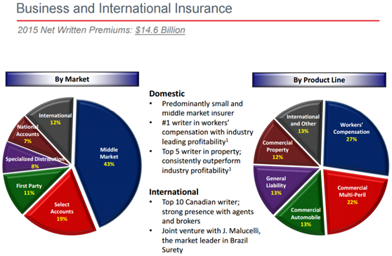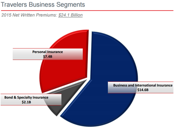 旅行者集团Travelers Companies Inc.(TRV)是世界上最大的保险公司之一,公司主要业务集中在美国本土,93%的保费收入都来自美国国内。公司为个人提供房产保险、租赁保险、车船险等;为企业提供员工赔偿、财产保险、网络保险等。
