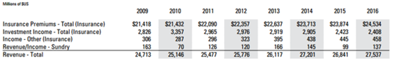公司目前的收入保持稳健,在经济尚未完全复苏的情况下,公司首要关注的应该是风险的把控,因此,目前公司的收入保持在一个稳定水平即可。公司2016年总营收达到275.37亿美元,比2015年的268.41亿美元,增长了2.59%。