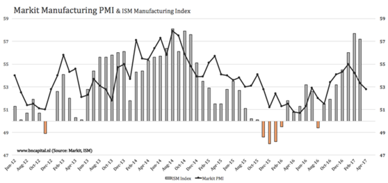 与此同时,在经历了4月份经济放缓,Markit制造业PMI也有一定下跌。