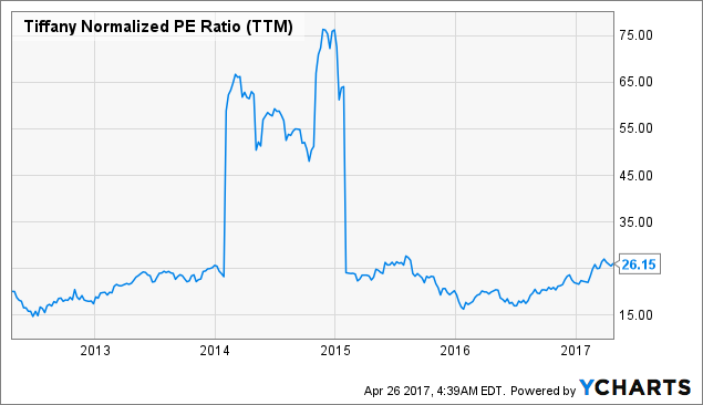 随着形势相比几个月前更见乐观,若未来美元如笔者预期持续走弱,那么接下来的12个月蒂芙尼将会是一个不错的投资标的。据公司管理层预计,2017年公司的EPS将同比增长5%左右(2016年调整后的EPS为3.75美元),但值得一提的是,此预测是在美元走弱之前发布的。未来随着旅游支出及国际业务盈利上涨,笔者预计2017年蒂芙尼调整后的EPS有望同比上涨6%至9%,最终将达4.05美元。