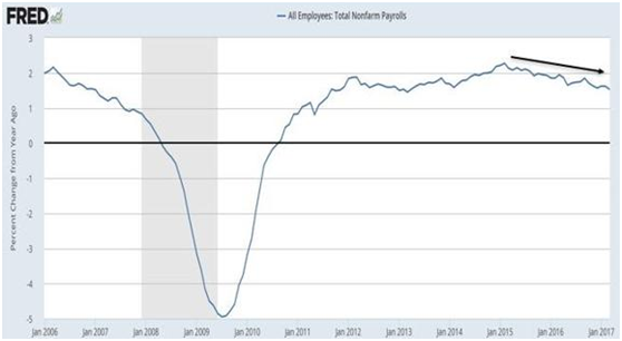 从就业方面来看,美国就业一直保持上升,这一点是积极的;但是,需要注意的是,其增速在2015年以后就开始明显下滑,作为经济的滞后指标,或许不能够有效说明目前的经济状况,但是对于直接影响消费的就业,还是需要投资者重视。