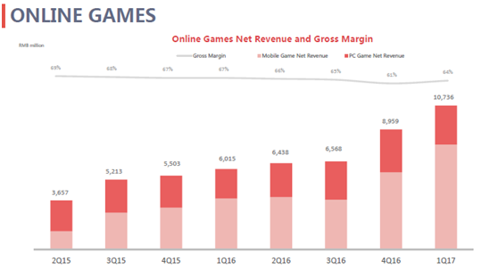 其中,在线游戏服务营收107亿元,同比增长78%;