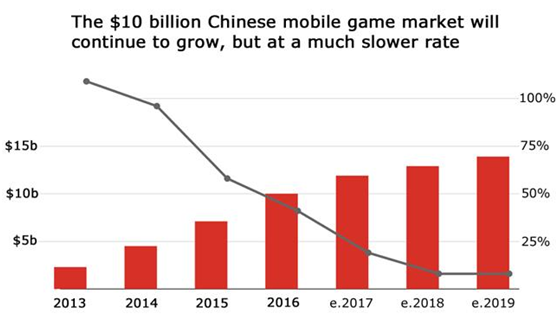 中国的手游市场仍然处于增长阶段,但是增速放缓。但是中国手游市场的竞争格局不错,除了龙头腾讯之外,基本就是网易了。