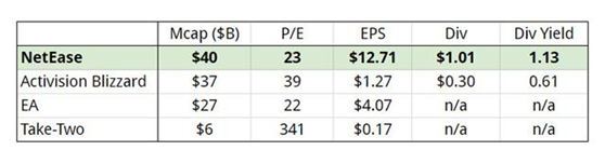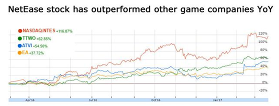 近一年来,网易的回报率在游戏公司中是最高的。