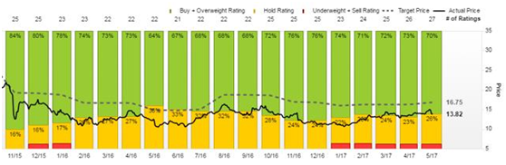 机构的一致预测给出的目标价为16.75美元,在目前的基础上大约有20%的上升空间。通过对公司基本面的分析,这个一致预测似乎不是那么合理。