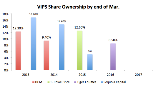 此外,如果你再看看公司的股东,老虎,T. Rowe Price以及Sequoia Capital这些大股东在前两年都已经消失了,没有资本的支持,唯品会如何继续发展电商,物流?