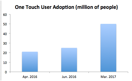 这是一个无缝连接的一键支付功能,减少了再次输入密码的冗余环节,大大简化了用户的支付步骤。One Touch如今在超过200个市场可用,已经被5000万用户,500万商家采用。
