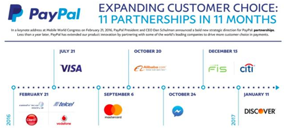 合作关系有两个好处,第一是提高公司的竞争力,公司的竞争对手比如,Visa,万事达,FB,谷歌,Citi等都成了公司的朋友。第二,能加速客户的参与度,2016年四季度,公司收获了540万新的活跃用户。
