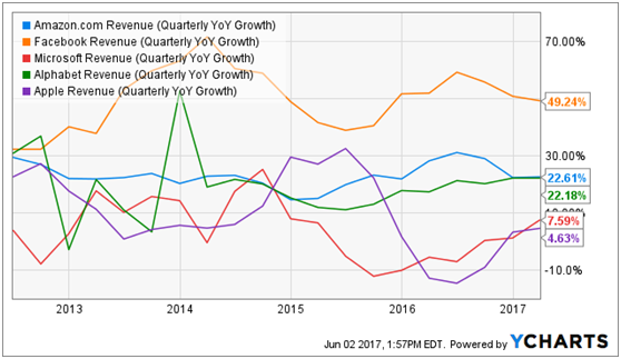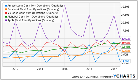五家公司的发展和增长都有不同的方法和模式,但是对于投资者来说,五家公司都存在共同点:估值品质高,强劲的现金获取能力,以及拥有决定比赛的能力,也就是市场的统治力。