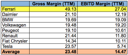 不过法拉利的部分竞争对手可能会提供定价较低的产品来吸引更多客户,因此尽管它们的利润率较低,但产品销量更高。