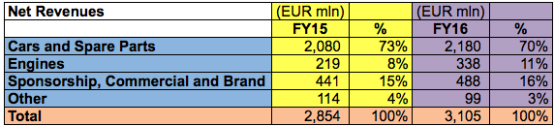 下面来看看法拉利的营收来源。从各部门来看,法拉利的营收主要来自汽车与零部件销售,其次是赞助、商务和品牌,预计公司营收还将继续增长。