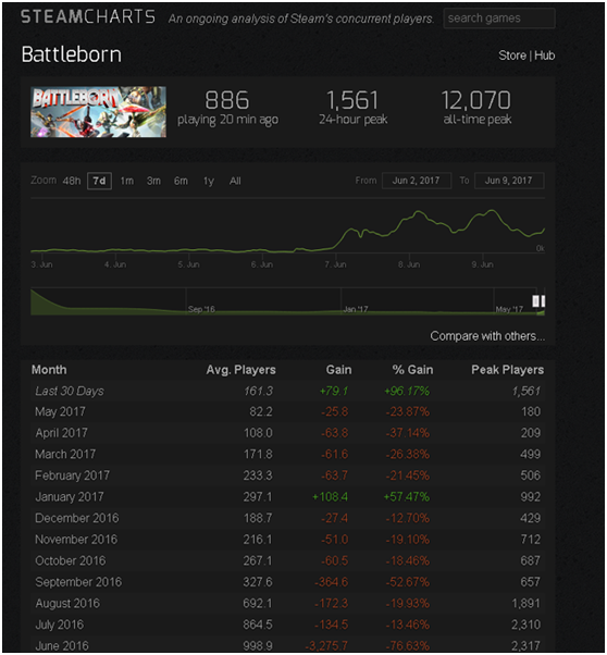 互动软件此举将《为战而生》转换经营模式,实则是无奈之举。由于本身存量玩家数量过低,因此,即使开发商Gearbox推出解锁各类地图和英雄,但对于玩家来说还是没有吸引力。