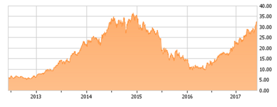 随着新的财报很快将要发布,股价上涨开始变得谨慎了,这是好事,不至于透支,然而现在的问题是股价并没有反映公司已有业绩。公司股价是从去年下半年开始起飞的,到现在上涨周期才一年时间,从历史数据看,这个上涨周期还没有走完。