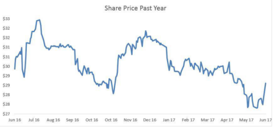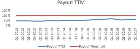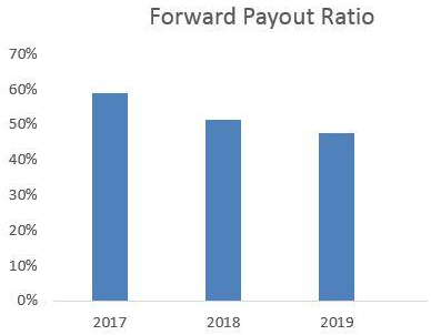 投资者期待通用股价反弹的同时,还能获得股息收入。通用的股息率高达3.3%,去年通用的股息支付率为63%,公司的利润足以支付股息。不过从公司的利润增速情况看来,通用的股息支付率到2019年可能会降到50%以下。