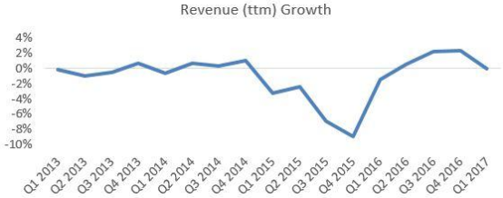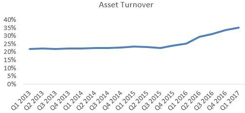 通用剥离资产的成效似乎已经显现。通用的资产周转率从一年前的25%增至今年一季度的35%,可见公司利用自身资产创造营收的能力有大幅提升。同期内通用的股东权益回报率从13%增至17%。以上数据表明通用剥离资产的收效甚佳。