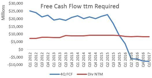 公司的自由现金流情况是通用未来面临的一个风险。2015年通用自由现金流一度高达220亿美元,而最近一年已经骤减到负70亿美元以下。如果通用继续在自由现金流为负的情况下维持当前的派息水平,公司的信用评级可能会受损。
