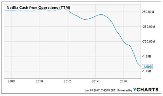 公司在内容创作上可谓是大幅烧钱,公司2016年花费了90亿美元在内容上,但市场似乎也认可了。但问题是用户数上升并不会给公司带来更多的现金流,公司还是需要现金投资内容。