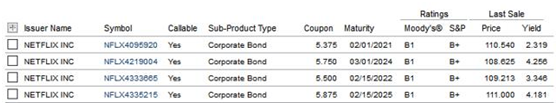 对于想做空奈飞的人,如果觉得股票不好下手,可以考虑债券。考虑到公司现金流情况不佳,并且债券没有实物支撑,债券相比股票是一个更好的选择。