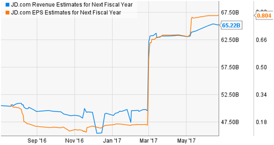 公司在过去一年的表现都超过了分析师的预测,所以,在迅速扩张的现在,京东会可能还会惊爆投资者的眼球。